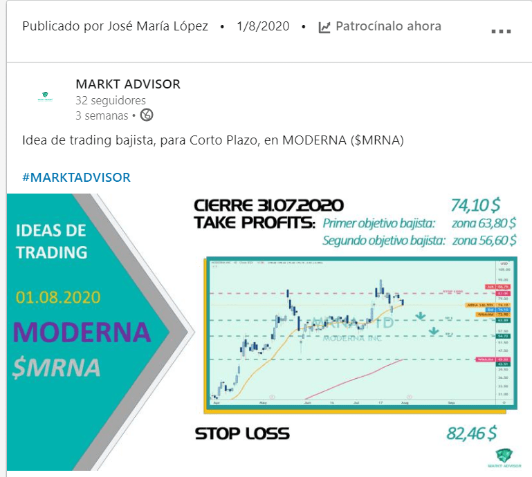 The 1st August 2020 we launched that idea in MODERNA ($MRNA) in Linkedn: