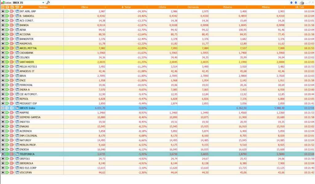 IBEX 35 en un momento de la sesión del 16 de Marzo 2020