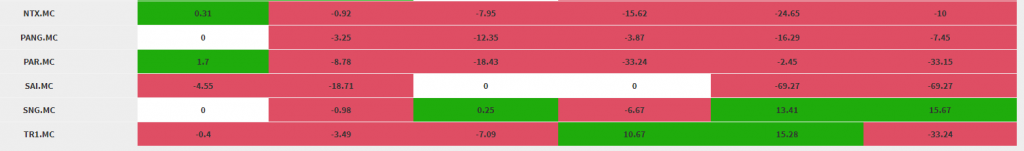 En esta tabla les dejamos los rendimiento de todos los valores a 1 día, 1 semana, 1 mes, 3 meses, 6 meses, 1 año y YTD ( Year To Date, este año hasta la fecha ):